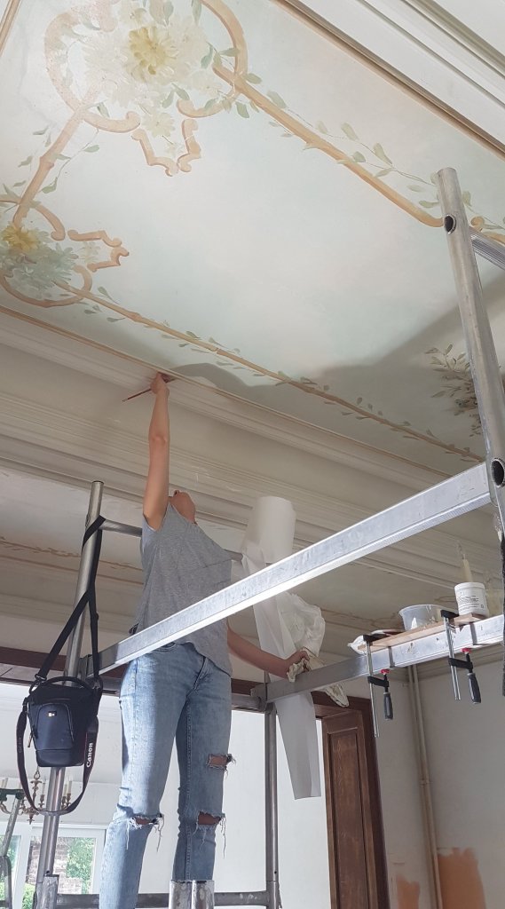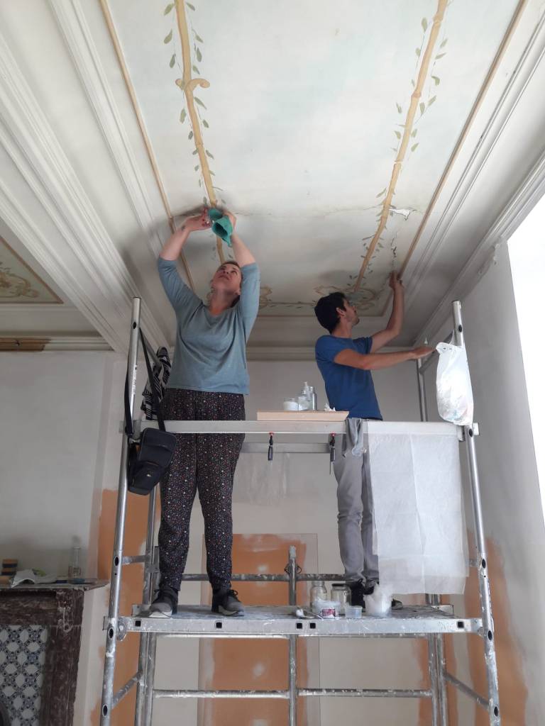 En collaboration avec l’atelier Artbee Conservation sprl restauration de peintures murales dans une belle ferme hesbignonne.